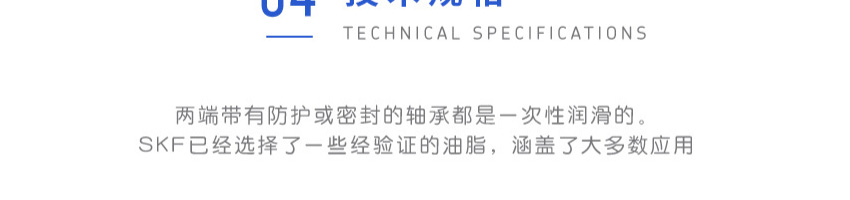 SKF深沟球轴承是一种仪器器件,有开式、双面带密封圈,带密封的轴承在外圈上开有可装密封圈或防尘盖的沟槽,适用于高转速甚至极高转速的运行。